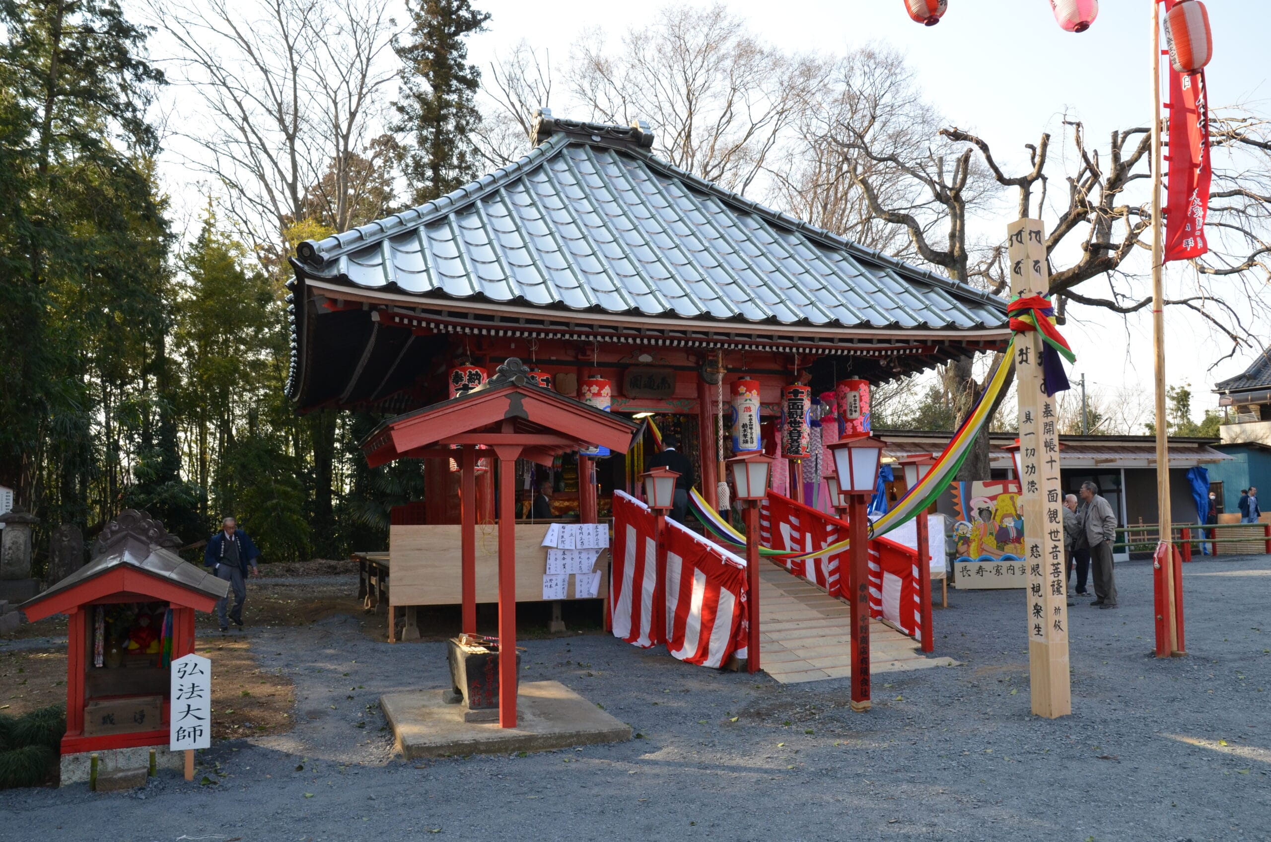 葛飾坂東観音霊場の札元。 霊場の創始者、 秀伝和尚の住寺です。 参道を入り、左手に十一面観音を 祀る観音堂が建っており、 南側に秀伝和尚の墓があります。 「円通閣(えんつうかく)」と 呼ばれる観音堂には、 高さ三尺三寸の十一面観音が 安置されています。 観音堂は三間三尺あり、 観音の三十三化身(けしん)に ちなんだものともいわれています。